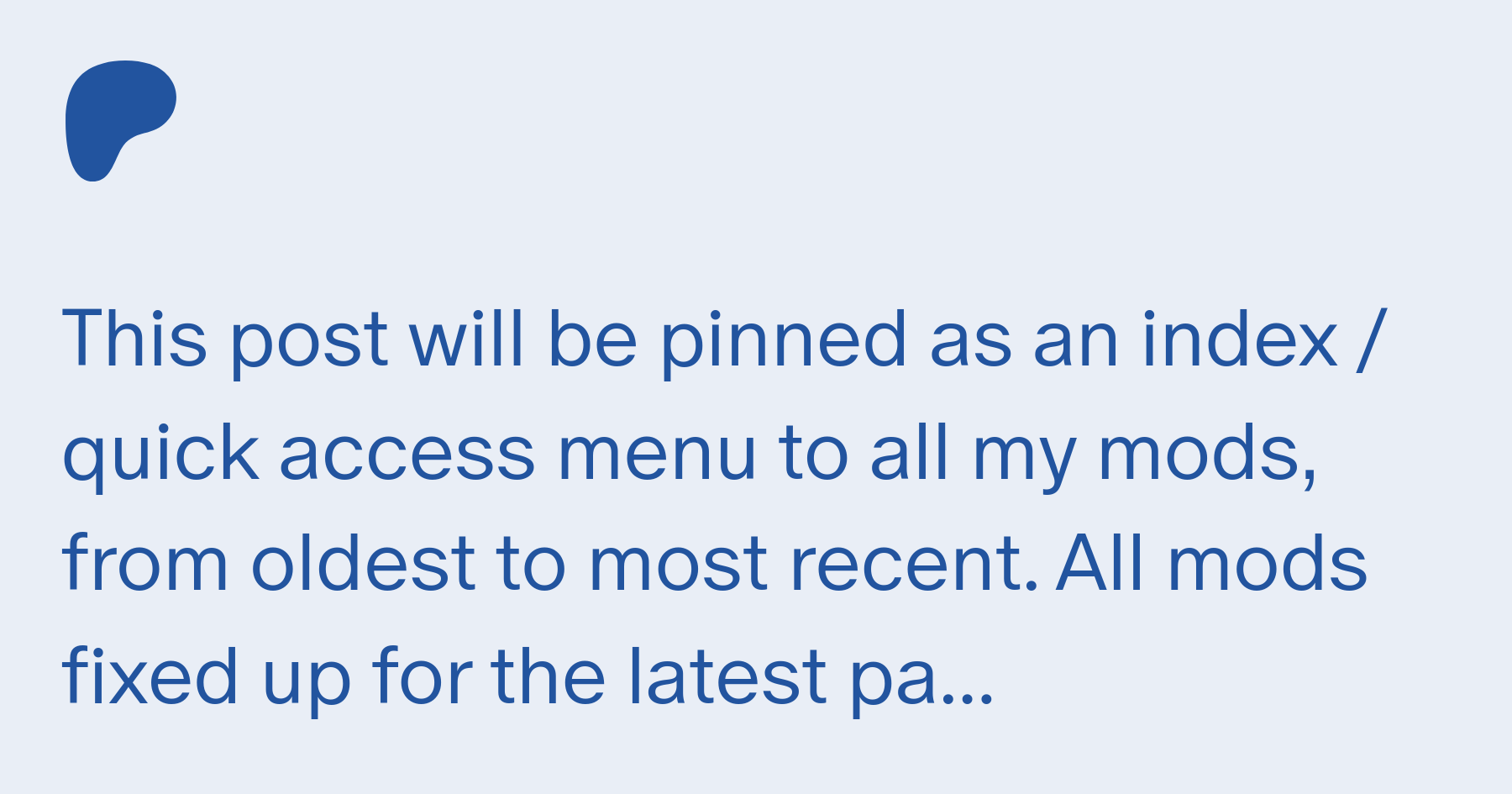 You can find those mods here, and i hope they can improve your experience playing the game too! I create small, simple mods for the sims 4, usually with the aim of improving my own gameplay experience. Modding for the sims is my newfound way to still be creative. Sep 22, 2021 · hello, i am lumpinou! I usually release any mod/update 2 weeks after the patreon release.